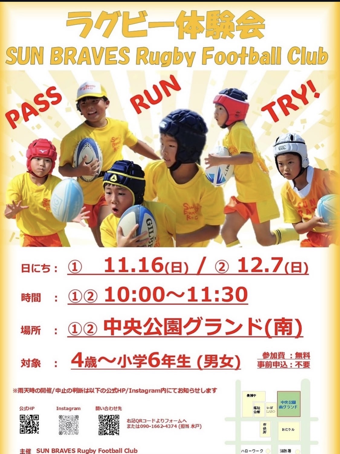 ラグビー体験会も同日開催!楽しいレクリエーションを予定しています。